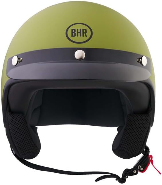DESIGN VINTAGE E MINIMALE: Questo casco da motorino si distingue per un frontino con 3 bottoni che aggiunge un tocco vintage. Disponibile in tre eleganti colorazioni (Bianco Metallizzato, Nero Opaco e Verde Opaco), il casco si adatta a tutti - dai teenager agli adulti.