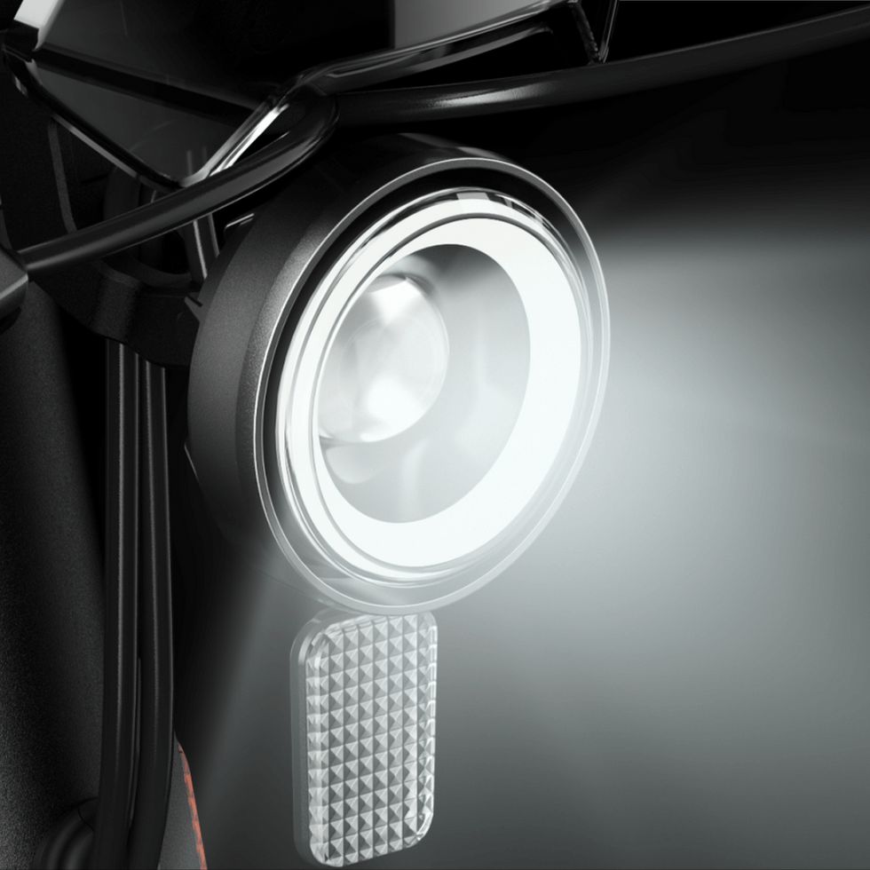 I freni a disco a doppia trazione assicurano una grande potenza di arresto sia sul bagnato che sull’asciutto. Inoltre, il nostro iconico faro “halo” e il campanello integrato garantiscono che tu non sia solo visto, ma anche sentito.